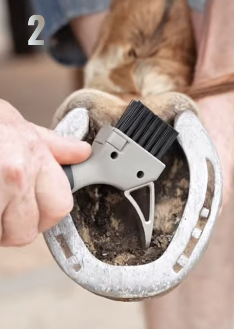 A patented 3-in-1 tool that allows you to clean, brush and apply hoof oil in one step, for faster, cleaner and more precise hoof care.