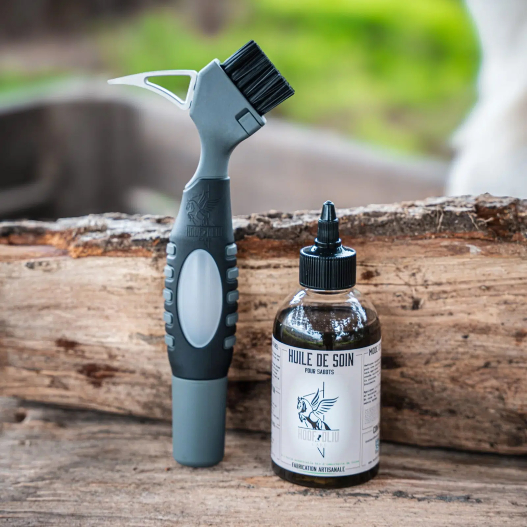 A patented foot pick 3-in-1 combined with a Corsican immortelle care oil, to maintain the hoof more easily and effectively.