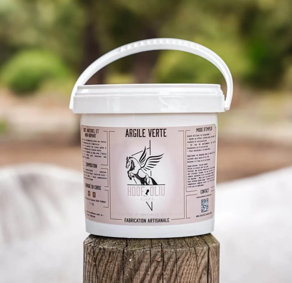 Offrez à votre cheval un soin naturel d’exception avec notre argile verte enrichie en Immortelle bio de Corse. Ce mélange unique associe les propriétés absorbantes et reminéralisantes de l’argile verte aux vertus régénérantes et circulatoires de l’Immortelle, pour un soin efficace et polyvalent.